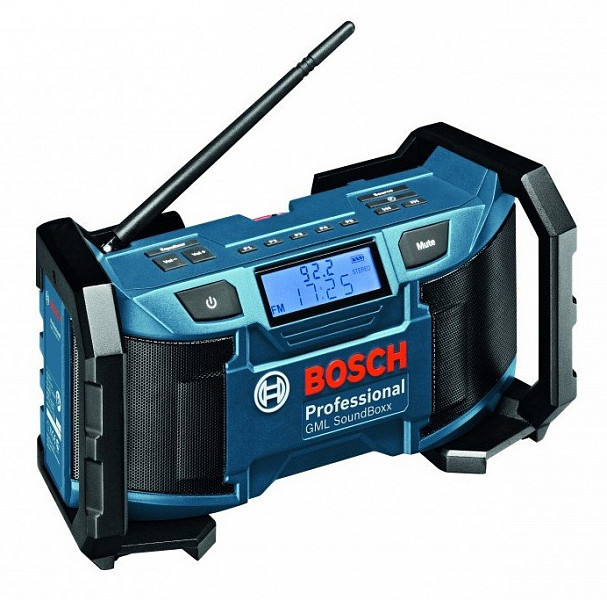 Радиоприемник Bosch GML 14,4/18 V Sound Boxx 0.601.429.900 имеет два мощных динамика для прослушнивания как FM/AM-радиостанций, так и MP3-файлов. Модель работает от Li-lon аккумулятора 14.4 или 18В (не входит в комплект) или от сети. Буферные батарейки (AAA) предназначены для сохранения настроек времени. Ударопрочный корпус выдерживает падения с высоты 1 метр.