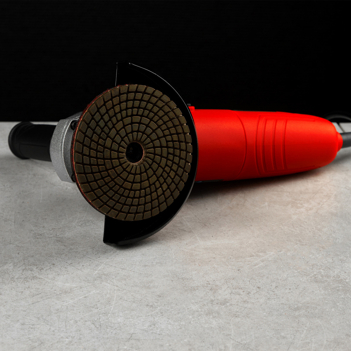 Алмазный гибкий шлифовальный круг Matrix 73507 диаметром 100 мм, с зернистостью P 50, 5 шт. в упаковке, предназначен для мокрого шлифования и используется при проведении строительных, отделочных и художественных работ. Абразив зернистостью P 50 позволяет проводить черновую обработку гранитных, каменных, керамогранитных и мраморных поверхностей. Рабочая часть выполнена из светло-зеленого термопластика с алмазным напылением и подходит для использования на цветных и черных материалах. Гибкая основа круга облегчает шлифовку рельефных элементов. Круг используется на УШМ с установленной опорной тарелкой для АГШК.