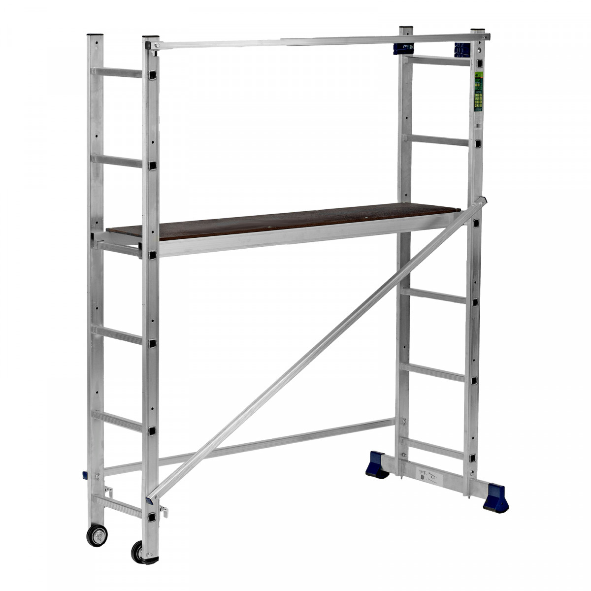 - Удобная транспортировка — лестницу-помост легко перемещать благодаря небольшому весу 11,6 кг и двум колесам.