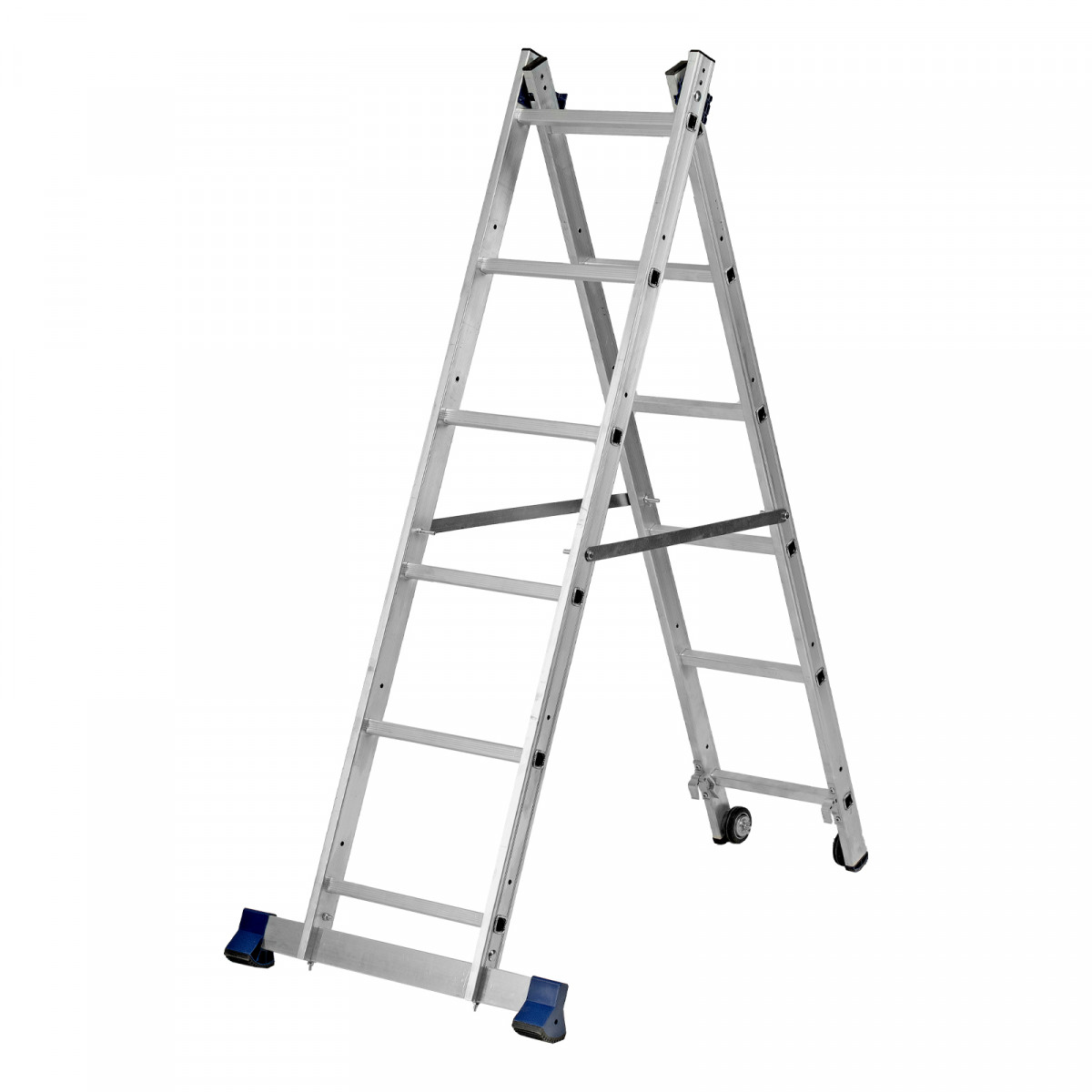 Прочный алюминиевый профиль обеспечивает устойчивость лестницы при работе на высоте.