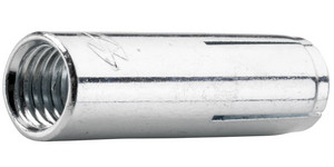 Забивные анкеры с внутренней резьбой предназначены для тяжелых и умеренно тяжелых нагрузок. Их используют при монтаже в бетон, полнотелый кирпич (макс. М8) и природный камень. Длина подходящего болта равна 1-1.5x номинального размера анкера + толщина прикрепляемого материала. При установке анкера надо пользоваться специальным инструментом!