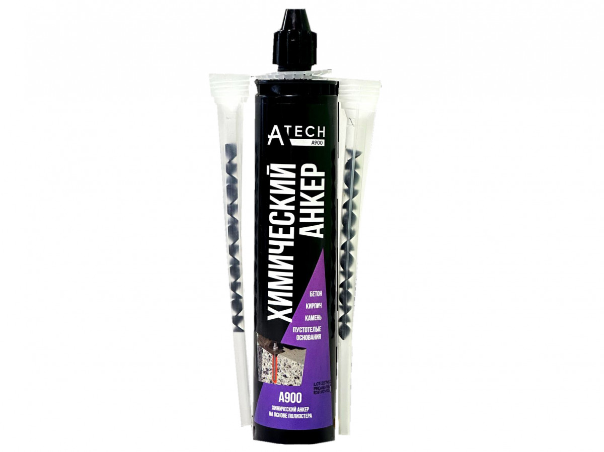 A-tech A900 - высокоэффективный быстротвердеющий двухкомпонентный полимерный состав на основе полиэстерной смолы. Специально разработан для фиксации различных резьбовых шпилек, анкеров, гильз и центрирующих втулок в основаниях из бетона, кирпича, пенобетона, газосиликата, керамзитобетона и т.п. с учетом физико-механических свойств, прочностных характеристик и коэффициентов температурного расширения данного класса строительных материалов