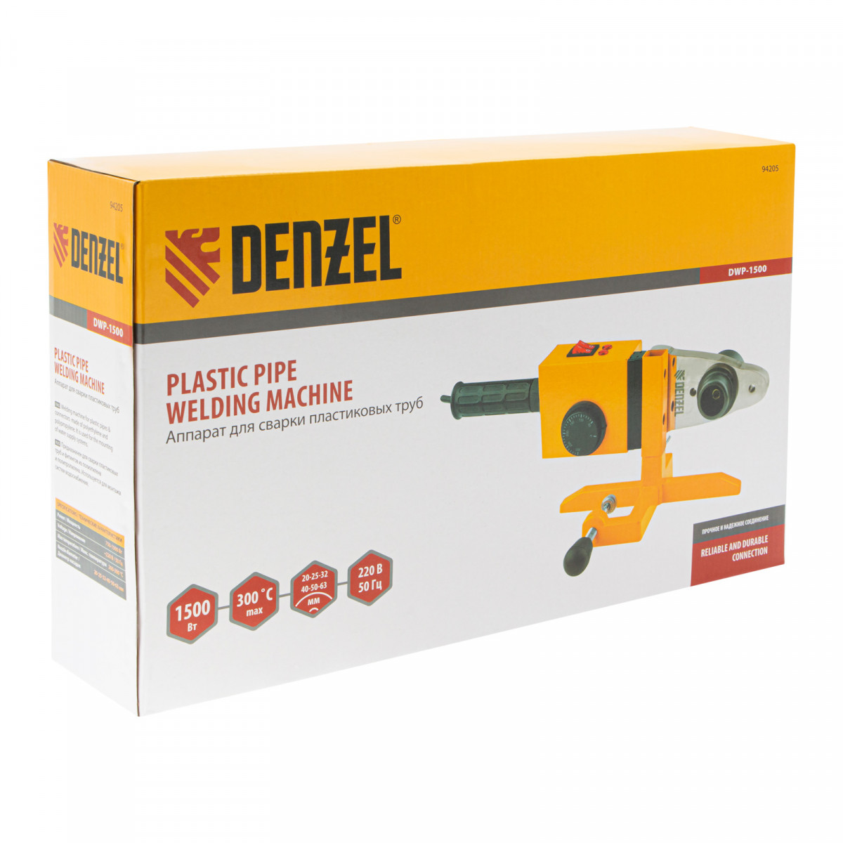Аппарат для сварки пластиковых труб DWP-1500, 1500 Вт, 260-300 град, комплект насадок, 20-63 мм Denzel