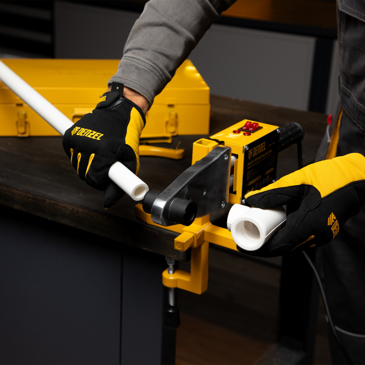 Аппарат для сварки пластиковых труб Denzel DWP-1500 94205 мощностью 1500 Вт предназначен для соединения полипропиленовых и полиэтиленовых труб диаметром 20, 25, 32, 40, 50 и 63 мм при нагреве до 260-300 °C. Незаменим во время ремонта и прокладки систем горячего и холодного водоснабжения, отопления, при проведении сантехнических работ с канализационными трубами и т.д. Питается от однофазной бытовой сети 220 В и имеет простой принцип работы, поэтому оптимален для использования в квартире и частном доме.