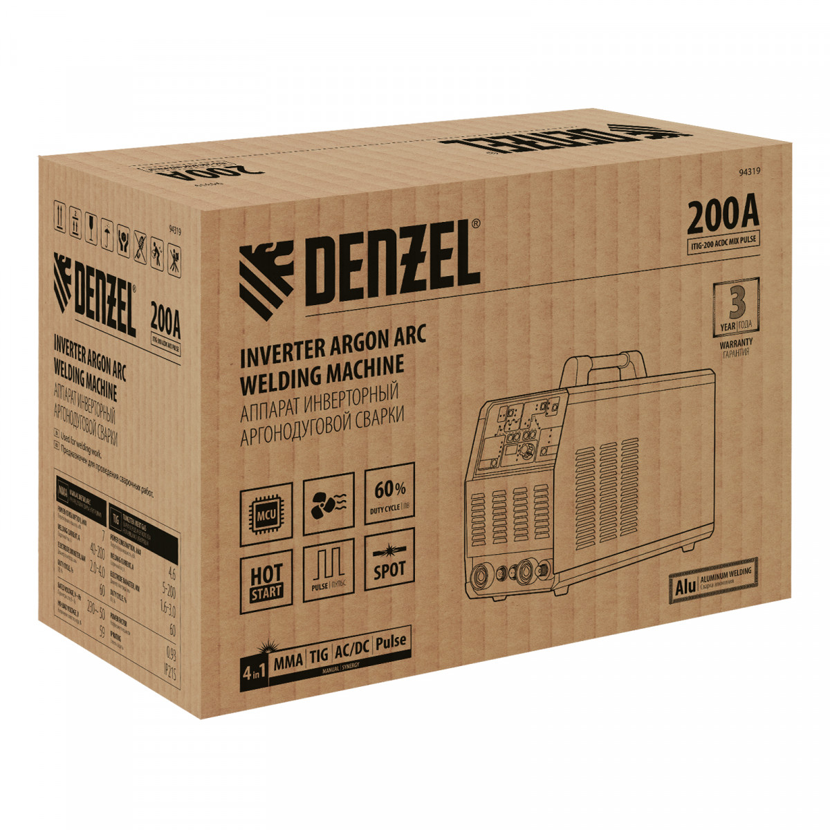 Аппарат инвертор. аргонодуговой сварки ITIG-200 ACDC Mix Pulse, 200 А, ПВ 60% Denzel