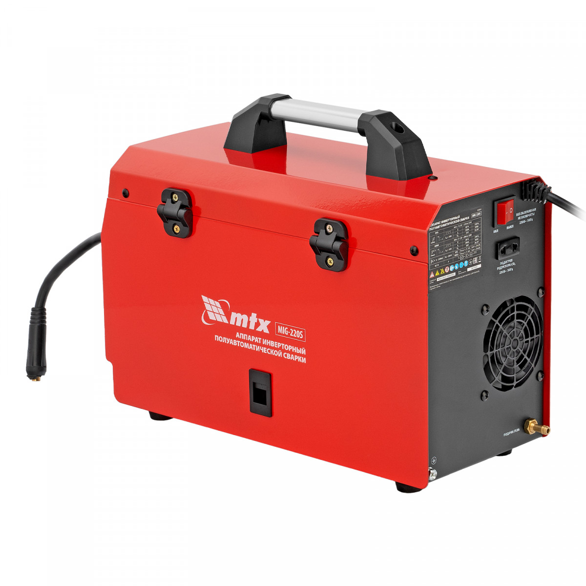 Инверторный аппарат полуавтоматической сварки MTX MIG-220S 94304, предназначенный для сварки на максимальном токе до 220 А, имеет продолжительность включения 60% и совместим с катушками весом до 5 кг. Используется для работы со сталями, черными и цветными металлами. Сварочный аппарат изготовлен с использованием передовой технологии IGBT, позволяющей получать стабильный сварочный ток на выходе. Аппарат имеет высокий КПД при низком энергопотреблении, способен работать при пониженном до 180 В напряжении.