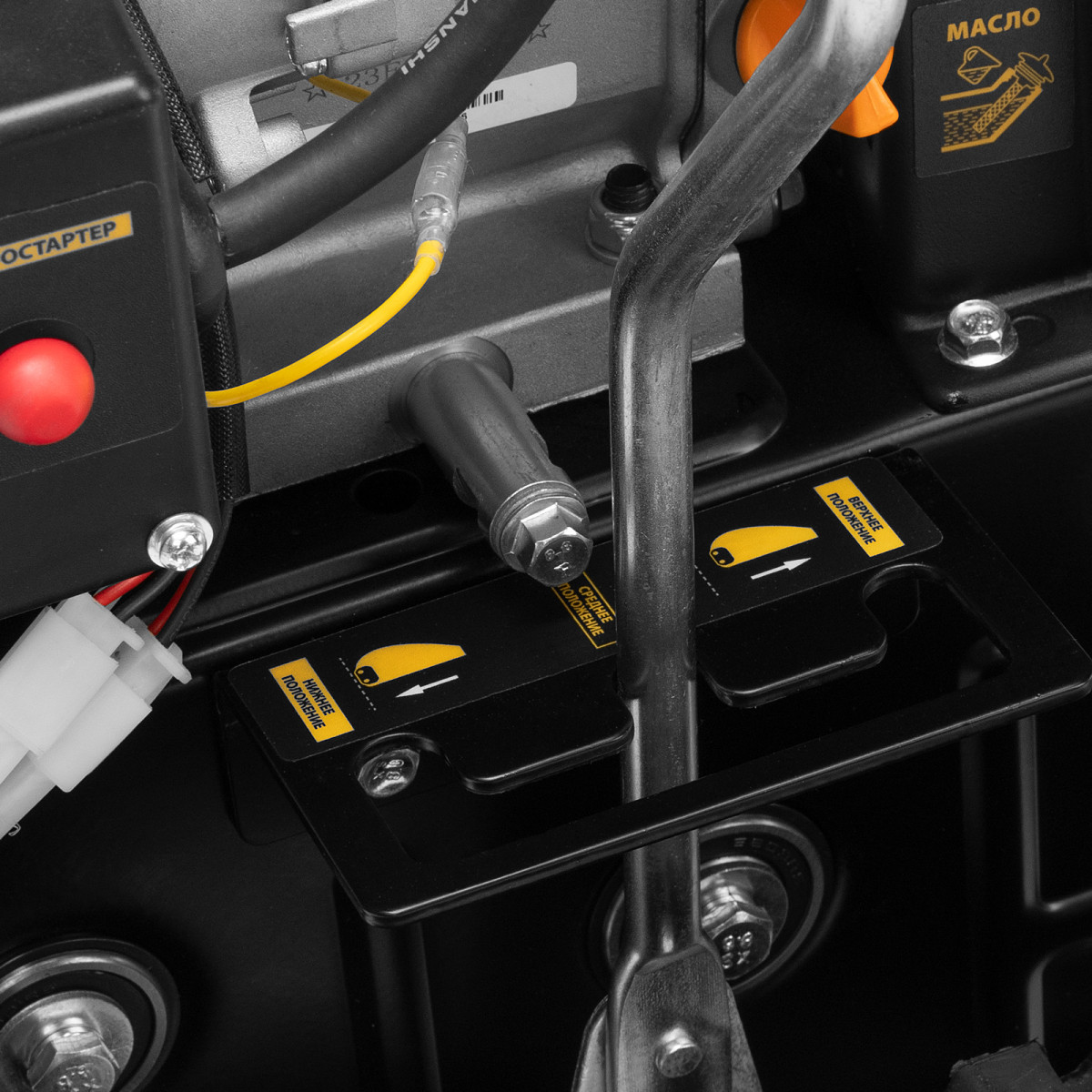 • Электростартер — для быстрого запуска двигателя достаточно подключить машину к розетке 230 В и нажать на кнопку.
