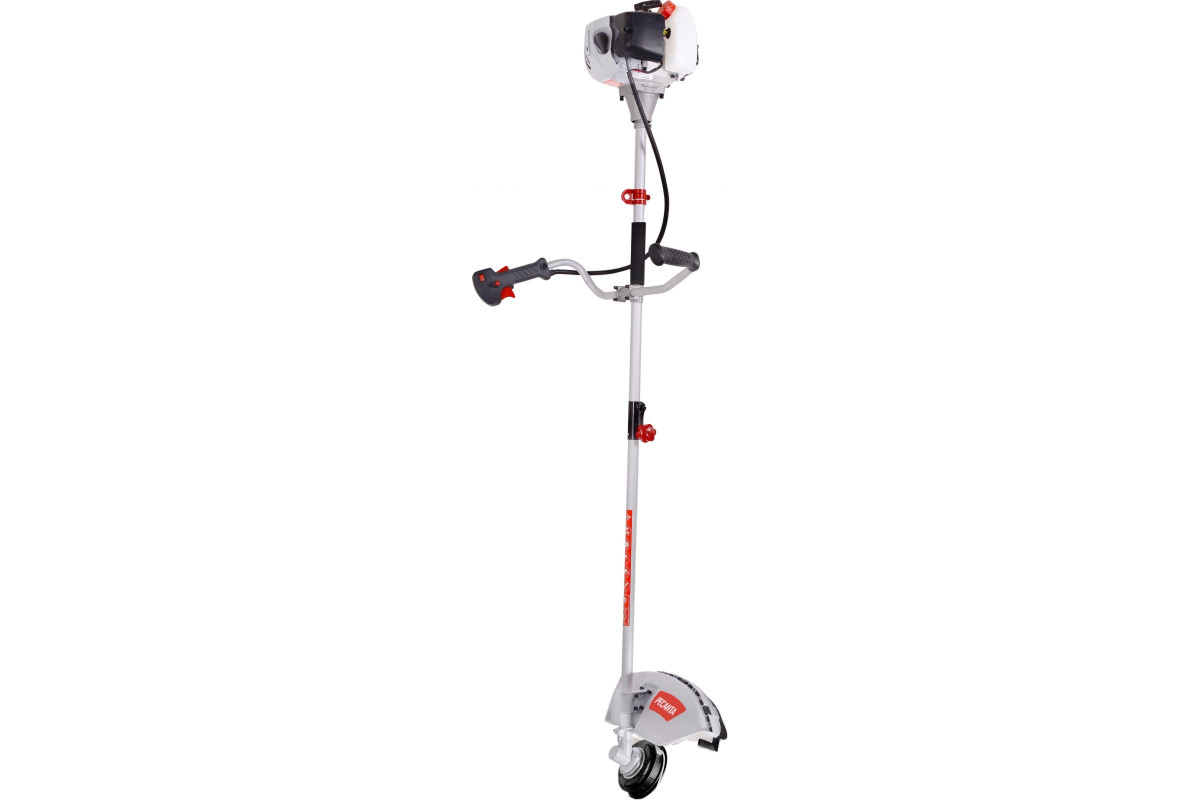 Бензиновый триммер этой серии безопасен в работе благодаря защитному кожуху, антивибрационной системе и блокиратору курка газа.