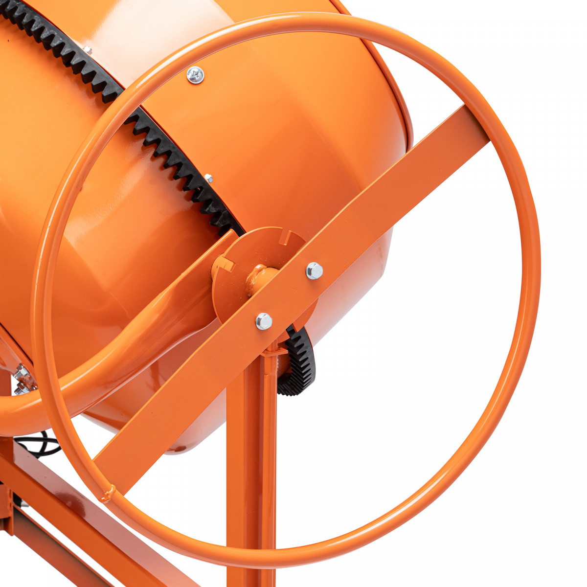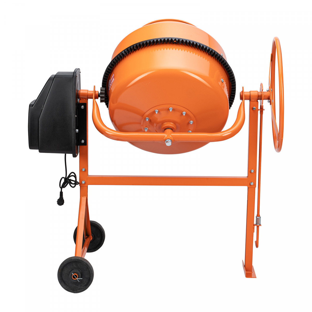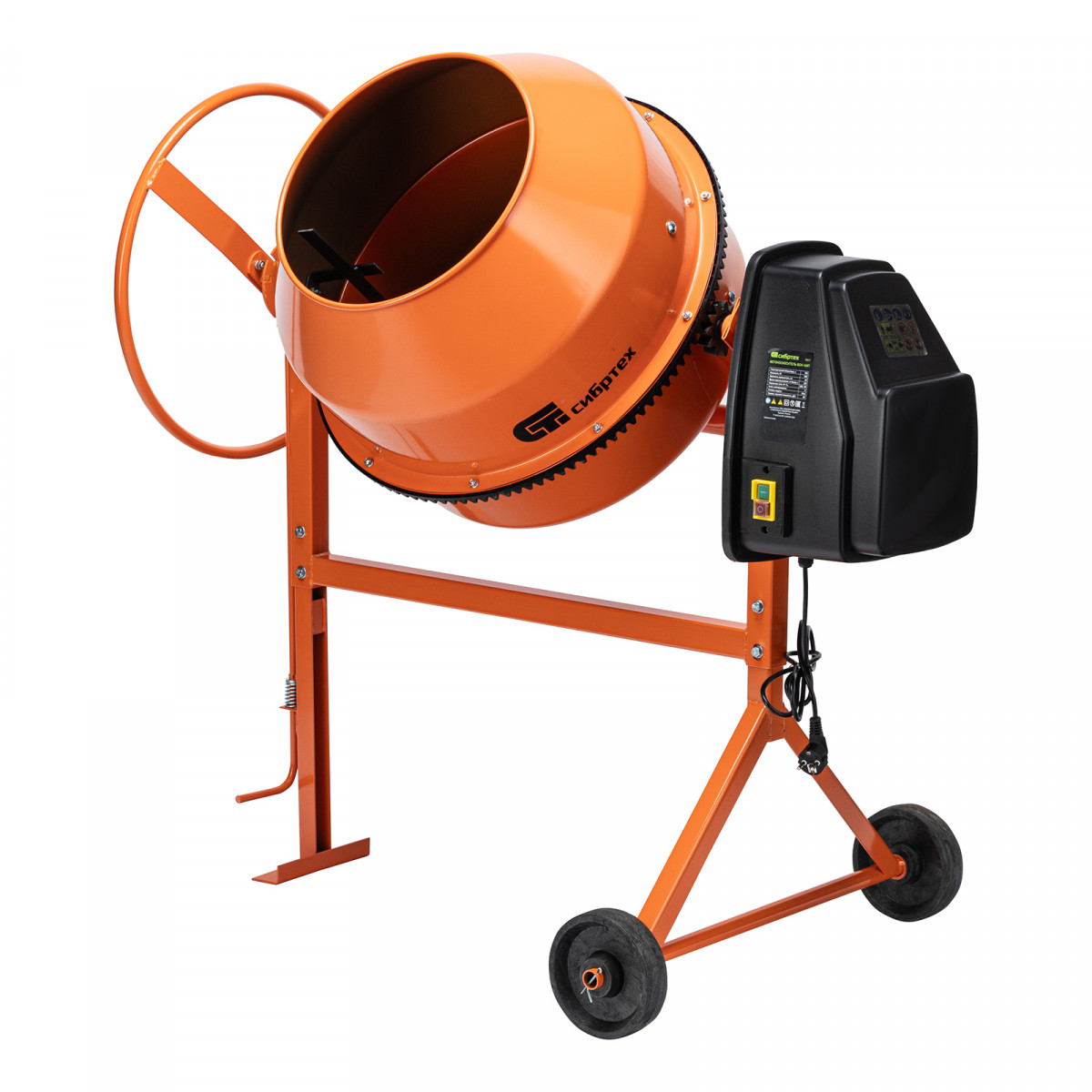 - Удобная загрузка и выгрузка смеси — барабан наклоняется при помощи маховика и легко фиксируется в нужном положении.