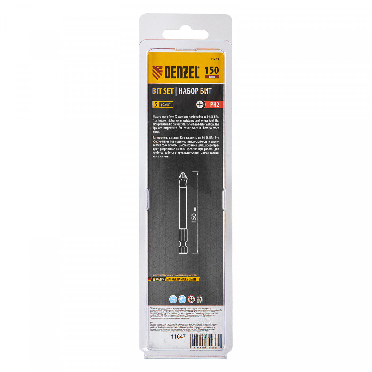 Бита PH2х150, сталь S2, цилиндр., 5шт. Е 6,3 Denzel