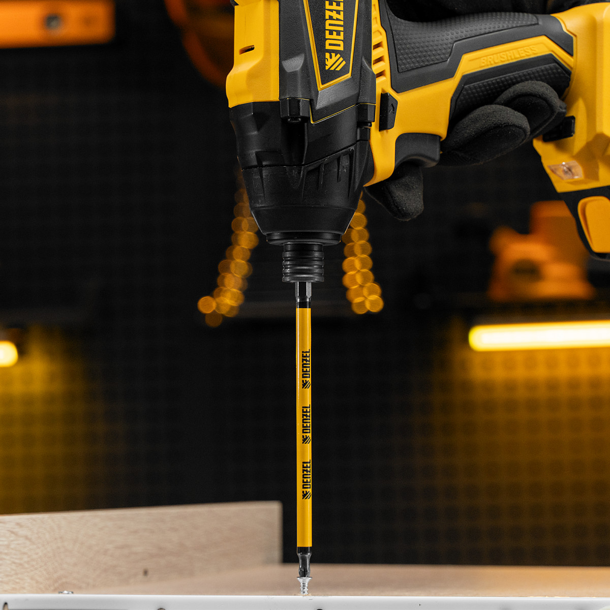 - Высокая результативность даже в ограниченном пространстве — благодаря удлиненному до 150 мм профилю битами удобно работать в труднодоступных местах.