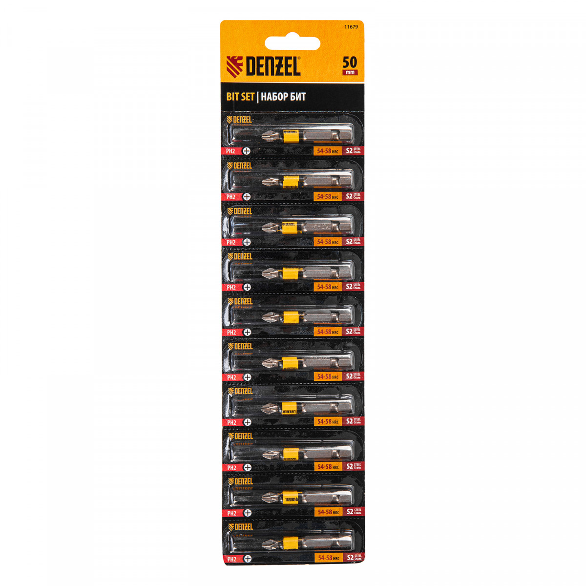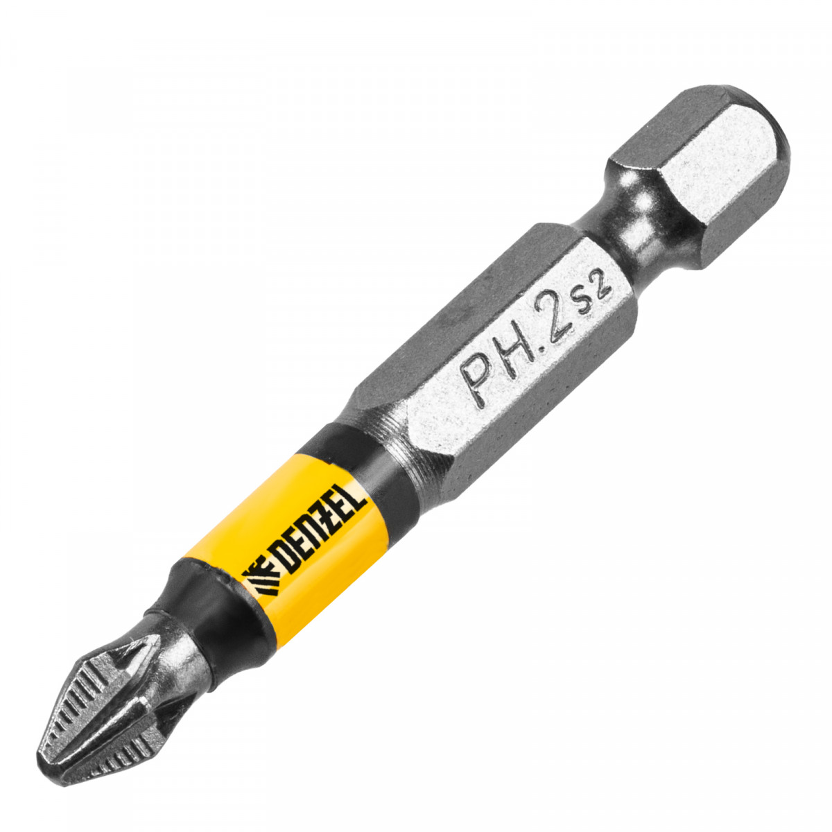 Бита PH2х50, сталь легированная S2, 10 шт., круглый профиль, отрывная упаковка, Е 6,3 Denzel