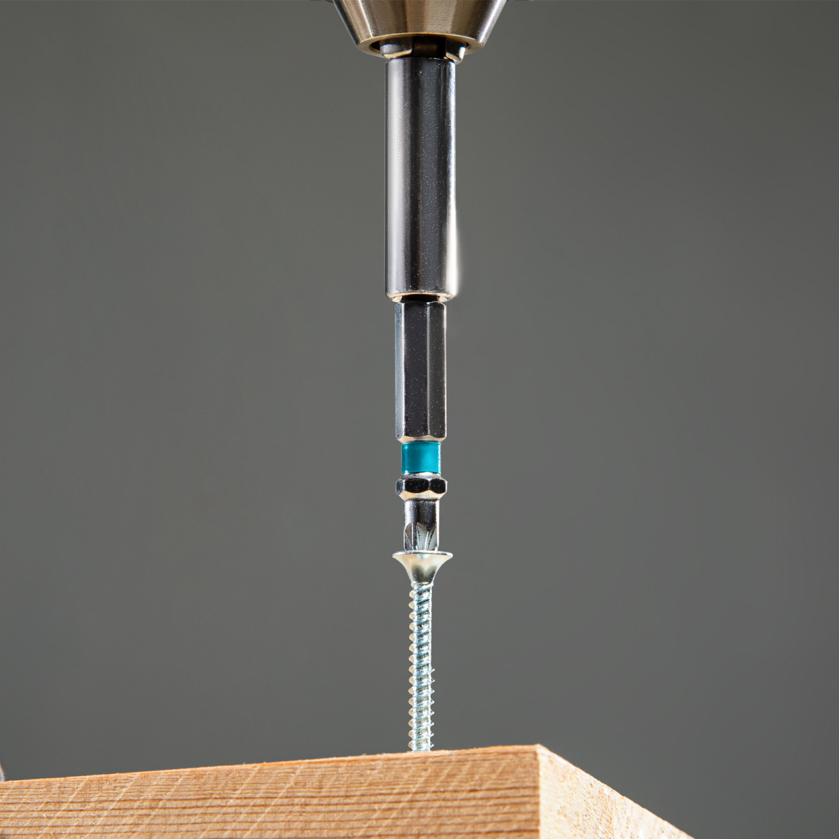 - Намагниченный шлиц — можно направлять шуруповерт с насаженным крепежом одной рукой, а другой придерживать закрепляемую деталь.