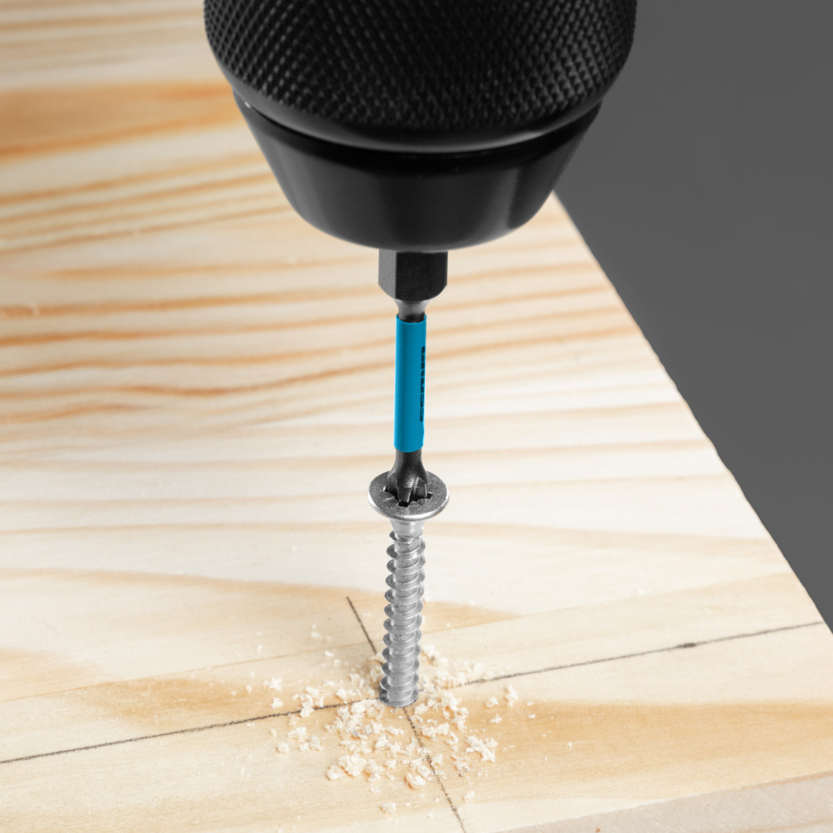 - Продуманная конструкция — торсионная зона позволяет работать ударным шуруповертом даже с особо твердыми поверхностями без риска поломки бит.