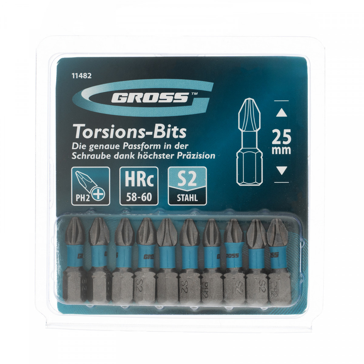 Бита торсионная PH2 x 25 мм, для ударных шуруповертов, 10 шт. Gross