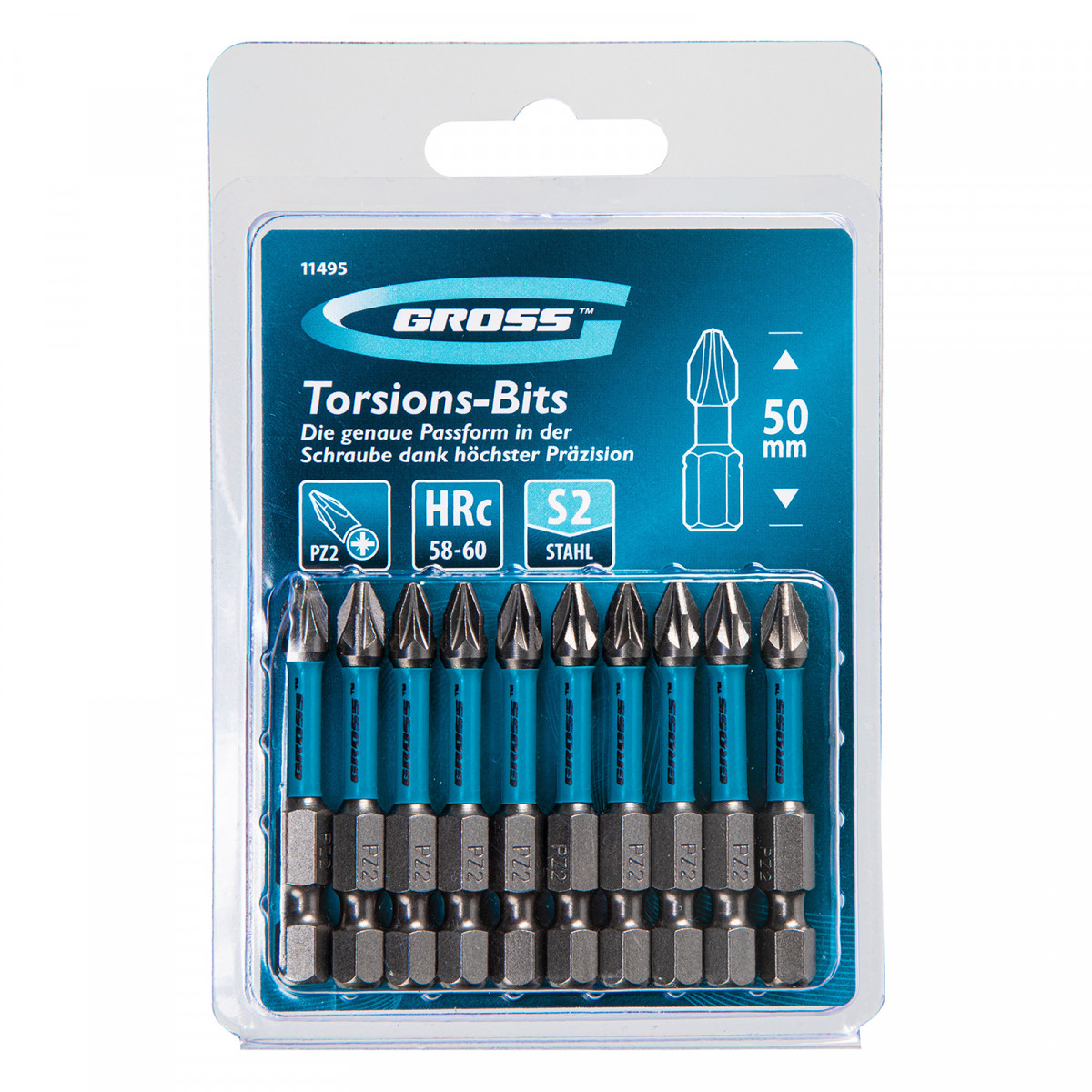 Бита торсионная PZ2 x 50 мм, для ударных шуруповертов, 10 шт. Gross