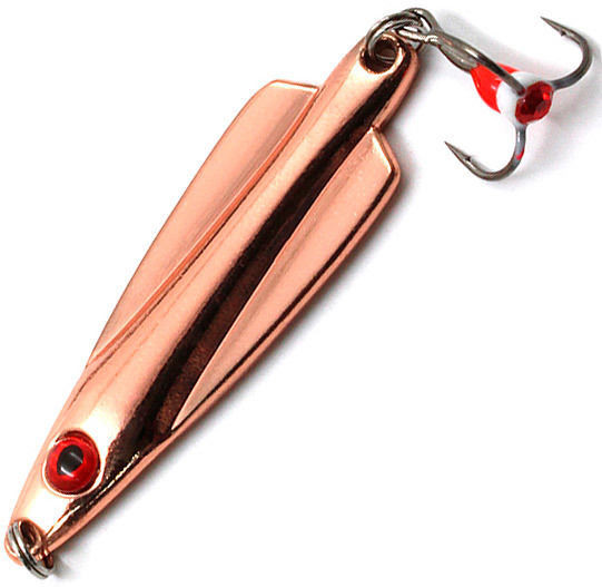 Вертикальная блесна отличная приманка для ловли в зимний период. Красиво играет на свободном падении. Небольшой изгиб тела блесны делает ее движения более амплитудными. При ловле в отвес блесна совершает небольшие уходы в сторону, увеличивая территорию облова вокруг лунки. Заглубляясь, блесна интенсивно бликует, раздражая внимание хищника. Игра света послужит дополнительным стимулом для атаки. Блесна более эффективна в разгар зимнего сезона.