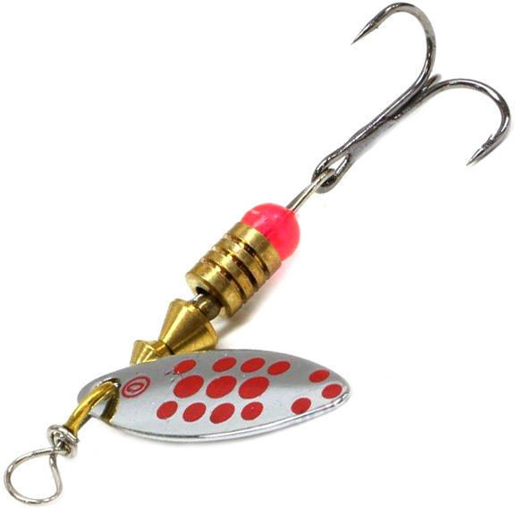 Блесна вращающаяся - это вертушка-тандем с двумя лепестками, что удваивает гидроакустический эффект и при проводке создает более сильные высокочастотные колебания, что приманивает любого хищника и делает ее более уловистей. Первый лепесток меньше второго, поэтому вихри, которые создаются за первым лепестком, не влияют на работу последнего лепестка. Лепестки имеют длинную и острую форму, которые прекрасно работают на течении и придонной ловле. Быстро замечают и атакуют такого рода приманки щука.
