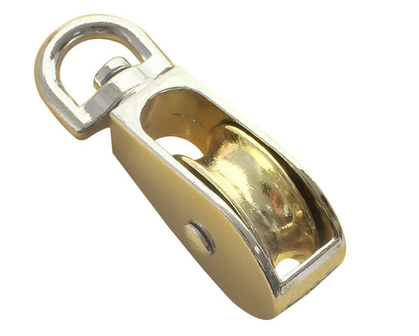 Блок для троса с металлическим диском. Используется там, где необходимо изменить направление движения груза или перенести его. Блоки крепятся к грузовым канатам и вместе представляют собой промежуточное звено между грузоподъемным оборудованием и грузом. Блоки канатные используются в различного рода монтажных, строительных и такелажных работах.