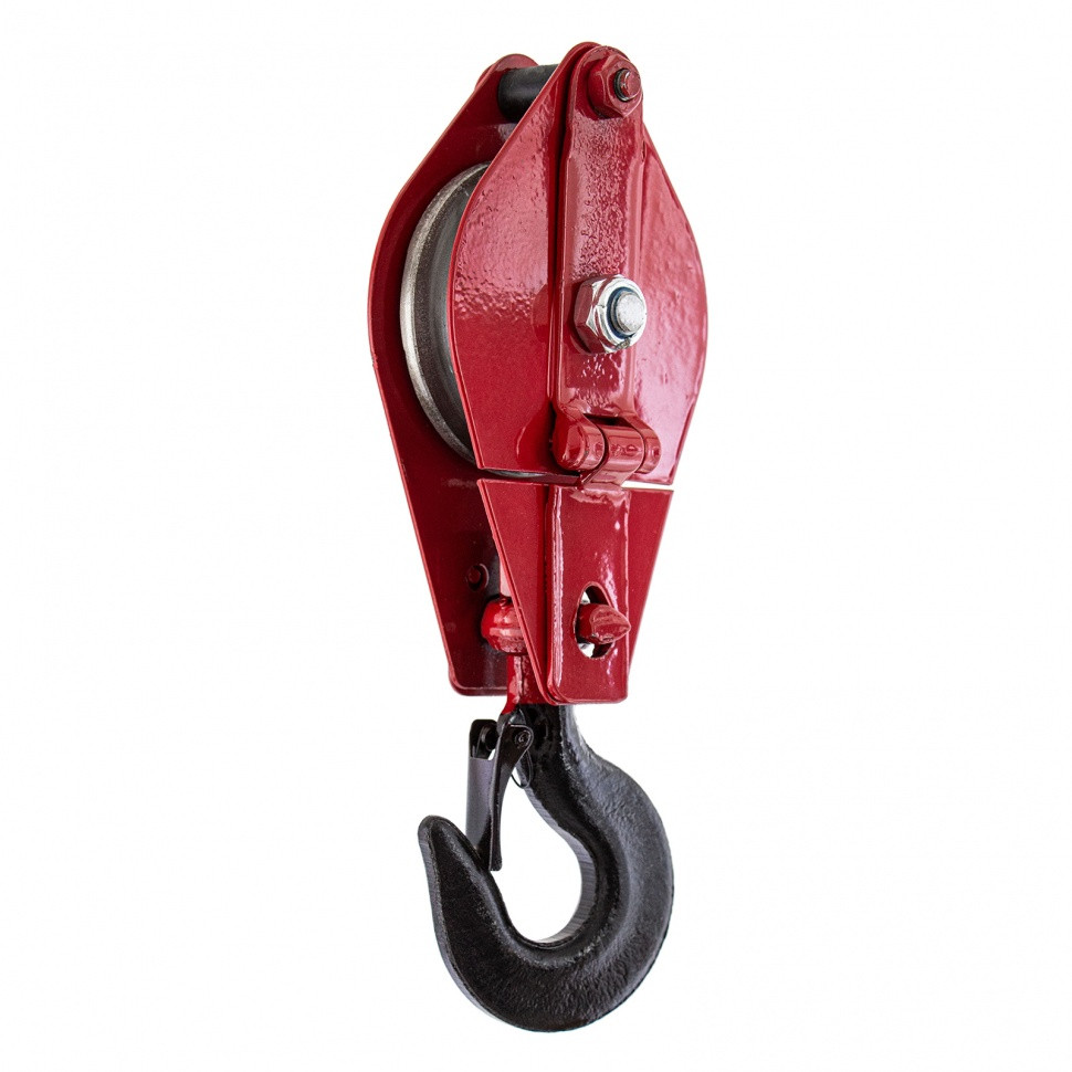 Кованая предохранительная защелка на крюке обеспечивает надежную фиксацию груза.