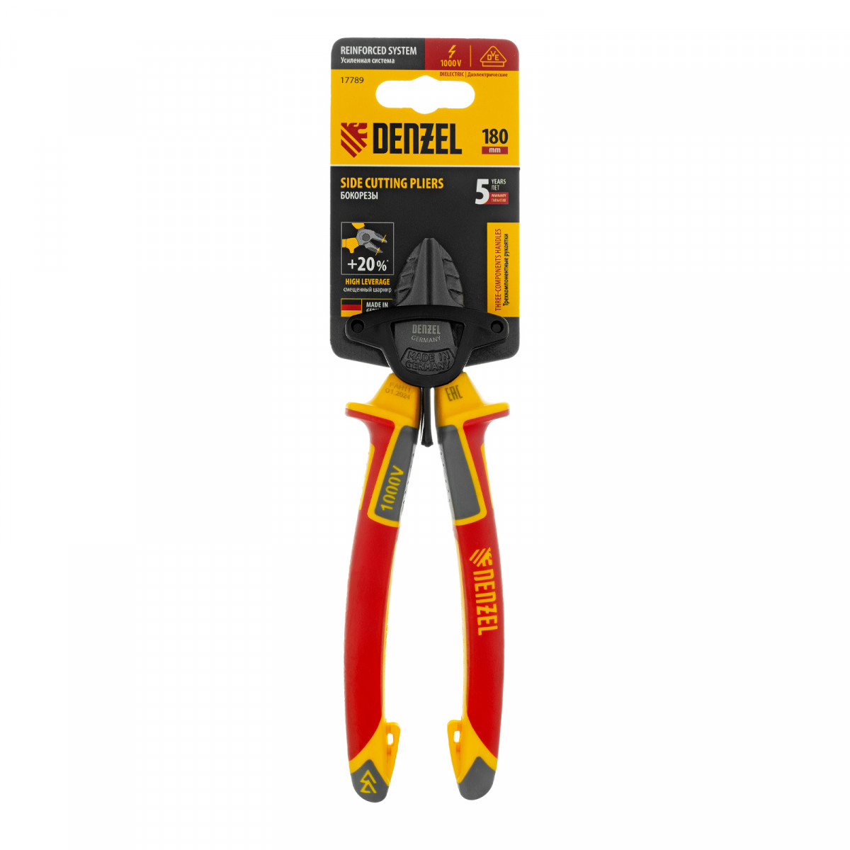 Бокорезы, диэлектрические рукоятки, до 1000 В, трехкомпонентные рукоятки, 180 мм Denzel
