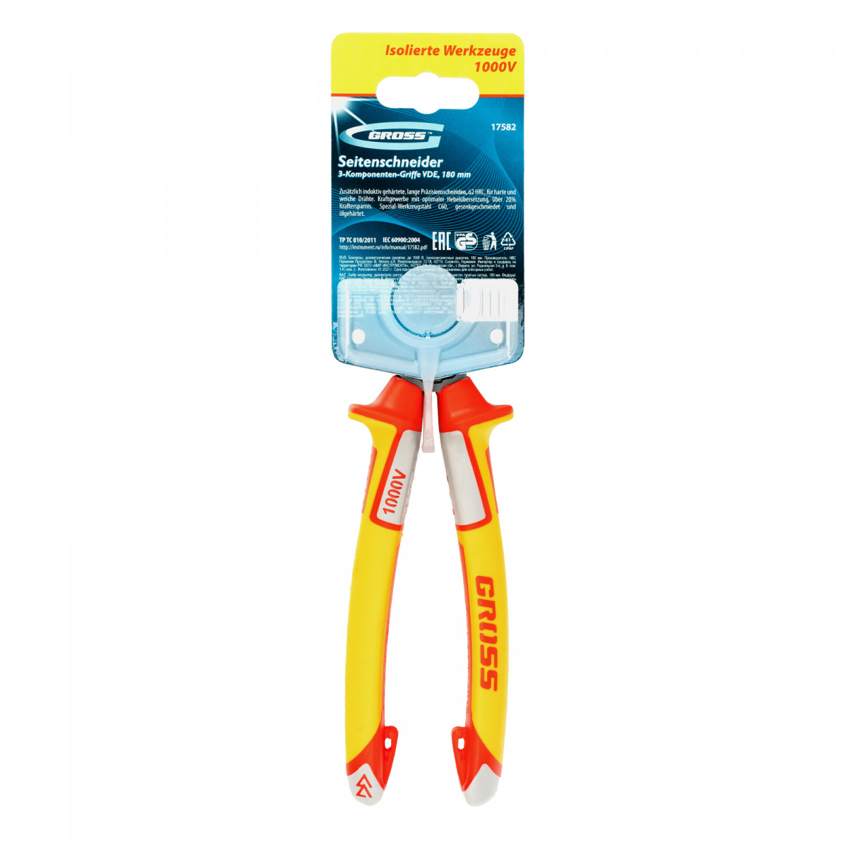 Бокорезы, диэлектрические рукоятки, до 1000 В, трехкомпонентные рукоятки, 180 мм Gross