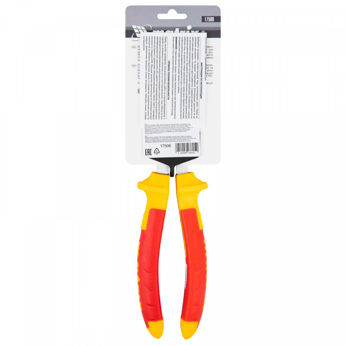 Бокорезы Matrix Insulated 17508 длиной 180 мм, с двухкомпонентными рукоятками, обладающими диэлектрическими свойствами и рассчитанными на напряжение до 1000 Вт, предназначены для откусывания проволоки, кабеля и проводов. Пригодятся также для резки материалов из металла и пластика. Важно — перед началом работ необходимо отключить напряжение в сети!