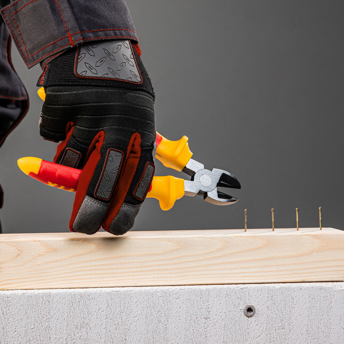 • Высокое качество — диэлектрические свойства рукояток подтверждены испытаниями, а немецкий знак качества Geprufte Sicherheit и полное соответствие европейским электротехническим нормам VDE подтверждают надежность и безопасность инструмента.