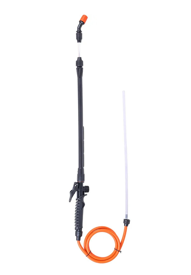 Используется в комплекте с пневматическим или гидравлическим опрыскивателем и применяется для химической обработки растений от вредителей и болезней.Длина брандспойт: 650-970 мм.Регулировка распыла: от струи до тумана.Длина шланга брандспойта: 1200 мм.