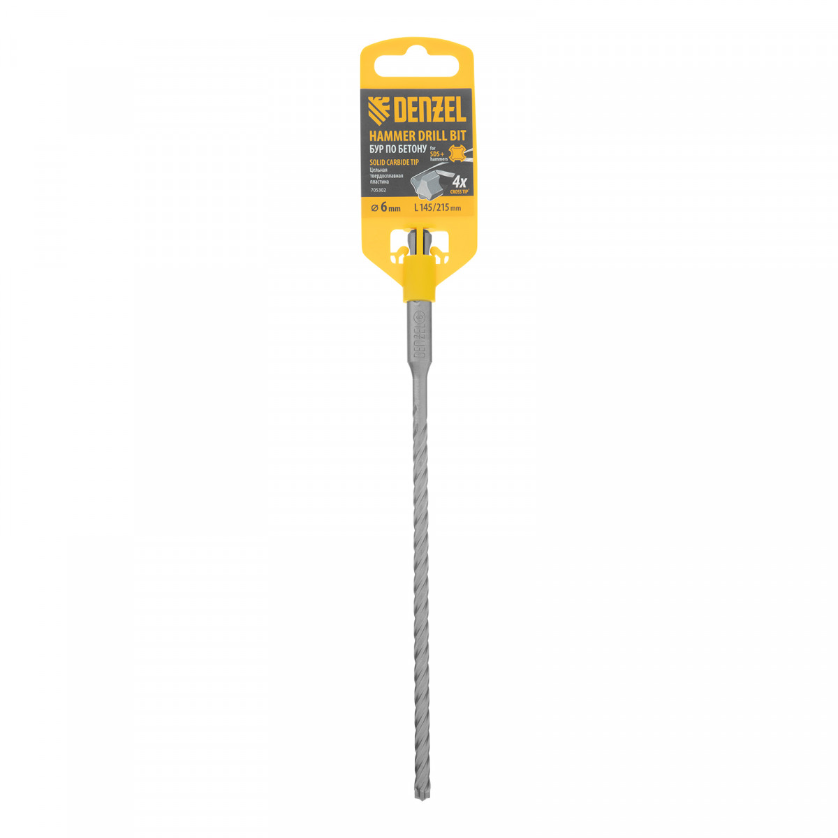 Бур по бетону, цельная крестовая пластина, 6x215 мм, SDS PLUS Denzel