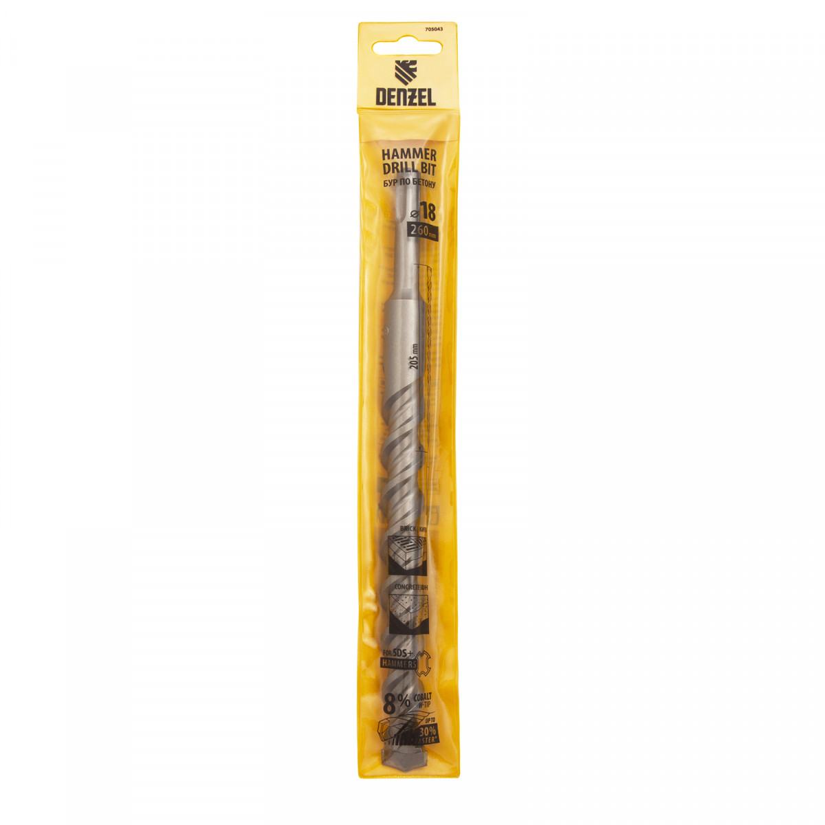 Бур по бетону Denzel Cobalt W-tip 705043 размером 18 х 260 мм, с хвостовиком SDS-plus и двойной спиралью, предназначен для сверления бетона, кирпича и камня. Используется в качестве оснастки для перфораторов с патроном SDS-plus. Бур оптимален для проведения строительных, ремонтных, монтажных работ.