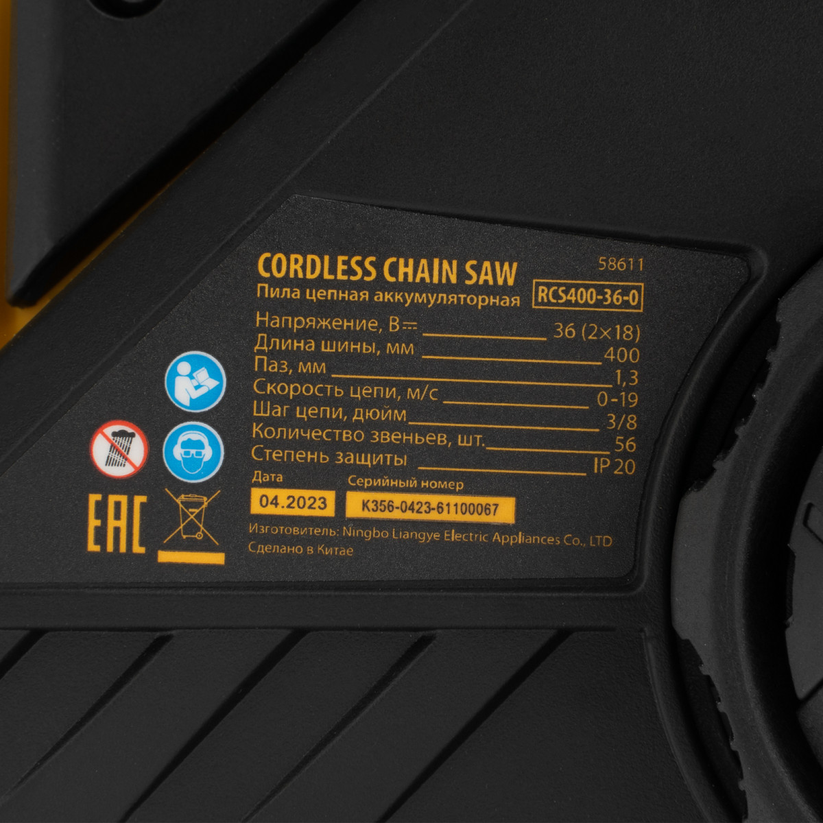 Цепная пила аккумуляторная бесщет. RCS400-36-0, Li-ion, 36 В, шина 400 мм Denzel