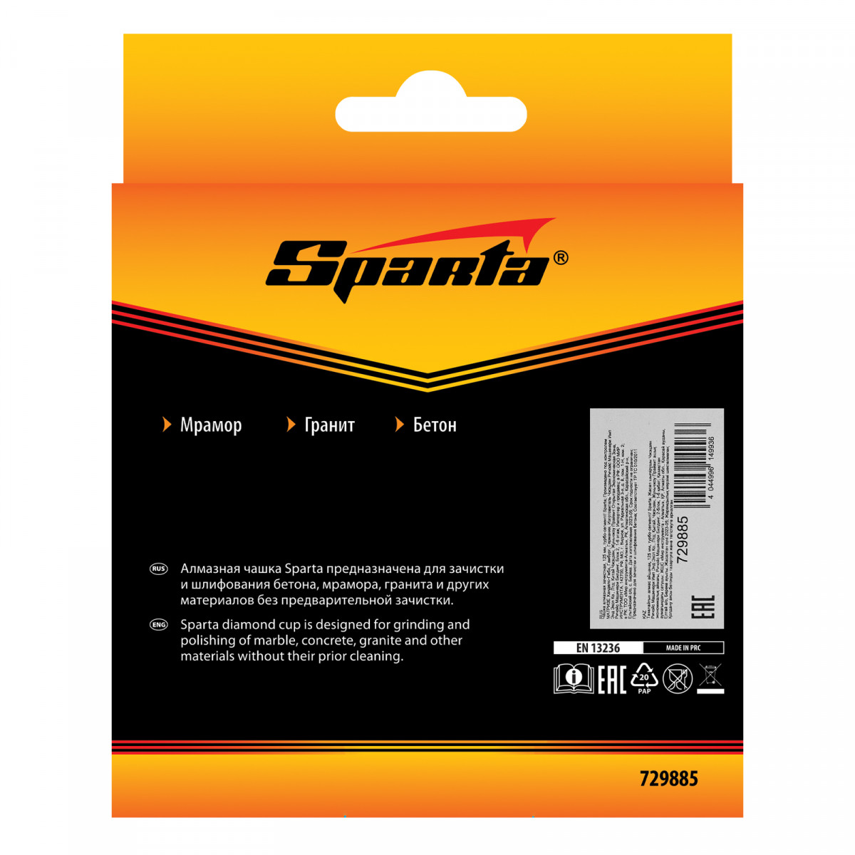 Алмазная зачистная чашка Sparta Турбо-сегмент 729885 диаметром 125 мм, с посадочным отверстием 22,2 мм, устанавливается на вал углошлифовальной машины и служит для шлифования бетонных, каменных, мраморных, гранитных и кирпичных поверхностей. С ее помощью можно проводить грубую обработку (понадобится несколько проходов) и чистовую шлифовку для придания материалу гладкости. Алмазный слой толщиной 4,5 мм обеспечивает ресурс работоспособности, достаточный для решения бытовых задач.