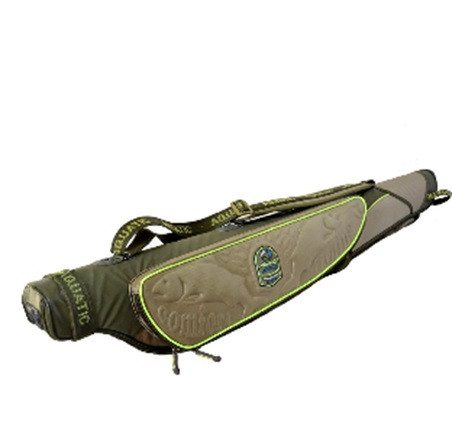 Снаружи расположен длинный карман для подсака или стоек и объемный карман на молнии для аксессуаров. В чехол помещается до 5 удилищ с катушками. Внутренняя часть выполнена из мягкого ворсистого материала на который крепятся специальные подушки для катушек. Уникальная конструкция позволяет поставлять данный чехол в развернутом виде, что вчетверо уменьшает его объем при транспортировке. Сборка производится на месте в течение 1 минуты.