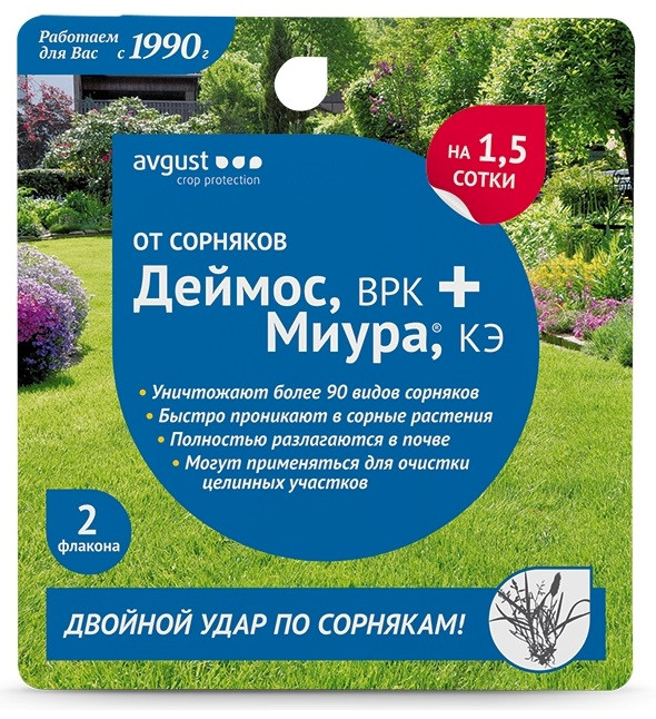 Применяясь совместно, уничтожают более 90 видов сорняков.Быстро проникают в сорные растения.Полностью разлагается в почве за период вегетации.Могут применяться для очистки целинных участков.