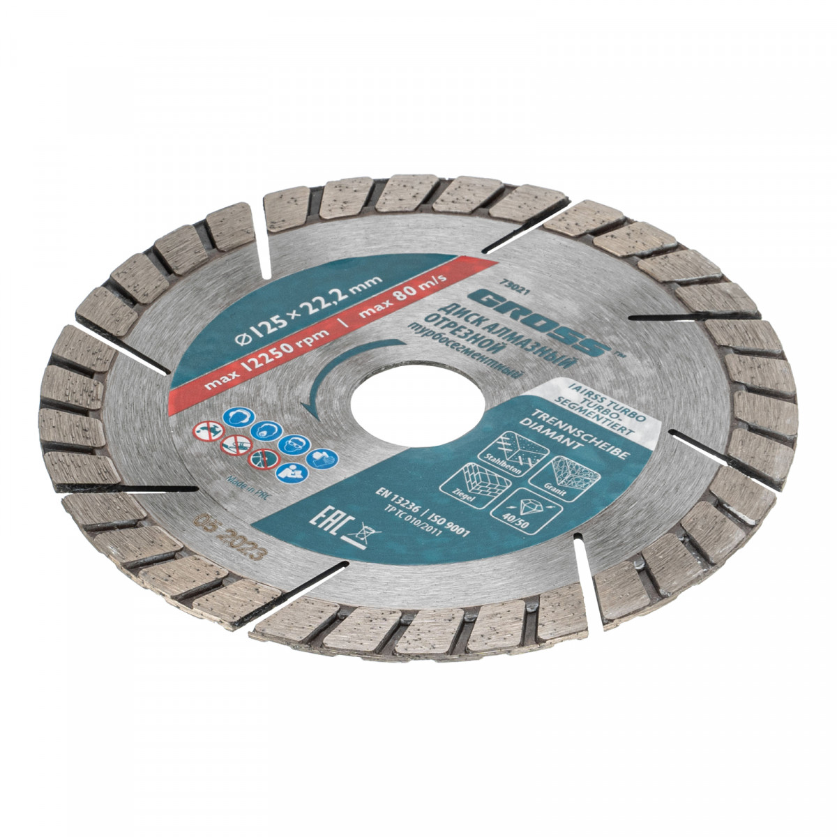 Диск алмазный, 125 х 22.2 мм, турбо-сегментный, сухая резка Gross