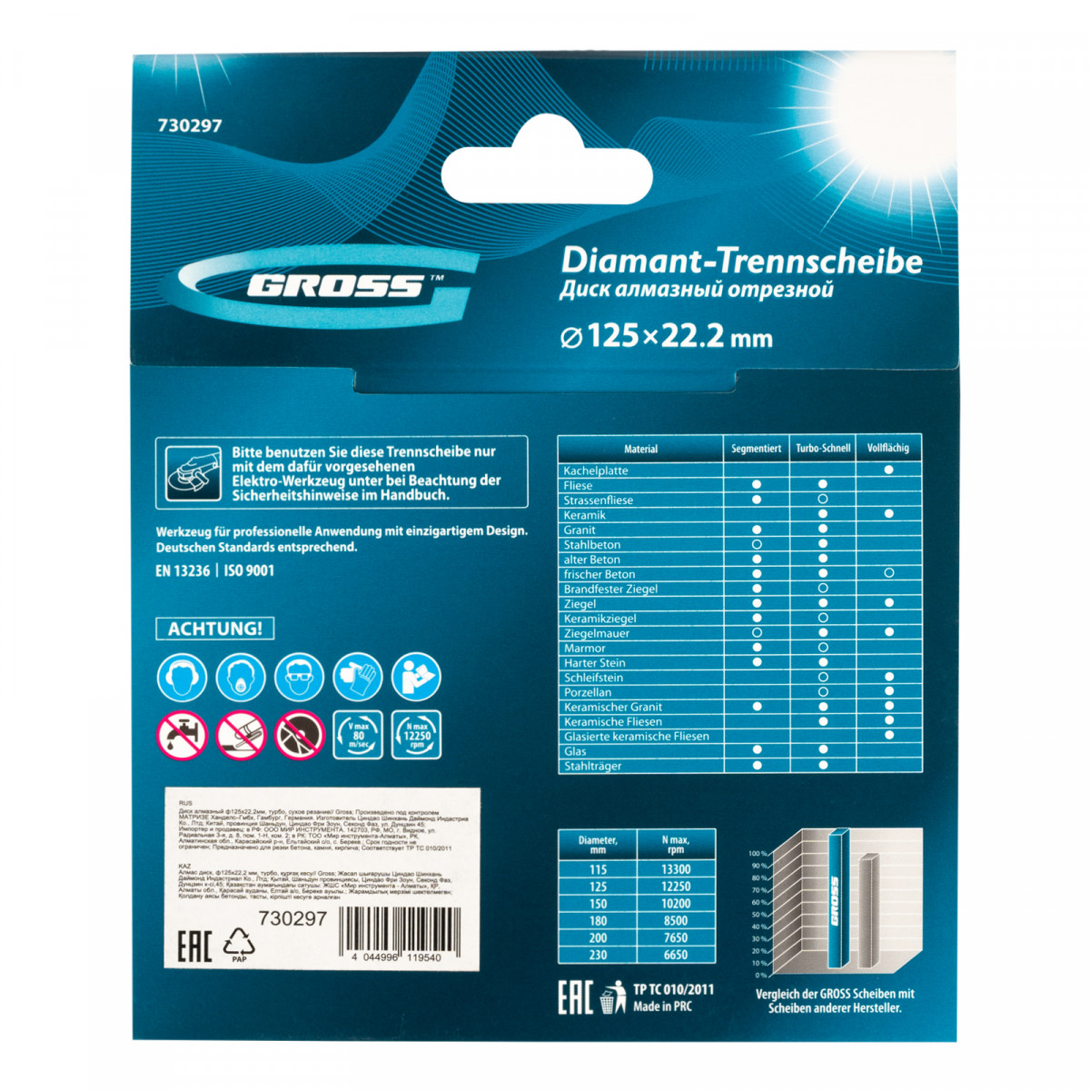 Диск алмазный, 125 х 22.2 мм, турбо, сухая резка Gross