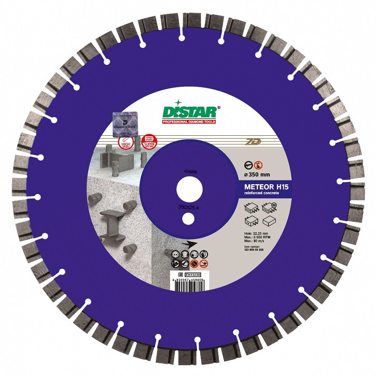 Продукция LP 40H 1A1 RSS / C3-W 350 х 3,2 / 2,2 х 12 х 25,4-25 F4 «Ди-Стар» Meteor представляет собой профессиональный круг для нарезания армобетона и других видов бетона без применения охлаждения.