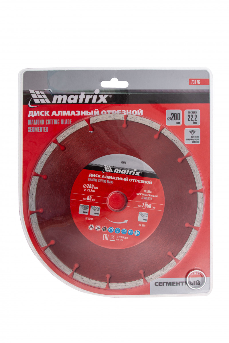 Диск алмазный, отрезной сегментный, 200 х 22.2 мм, сухая резка Matrix Professional