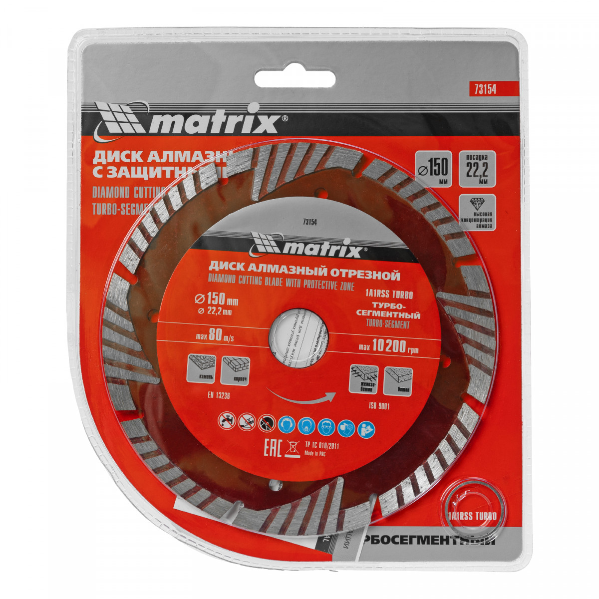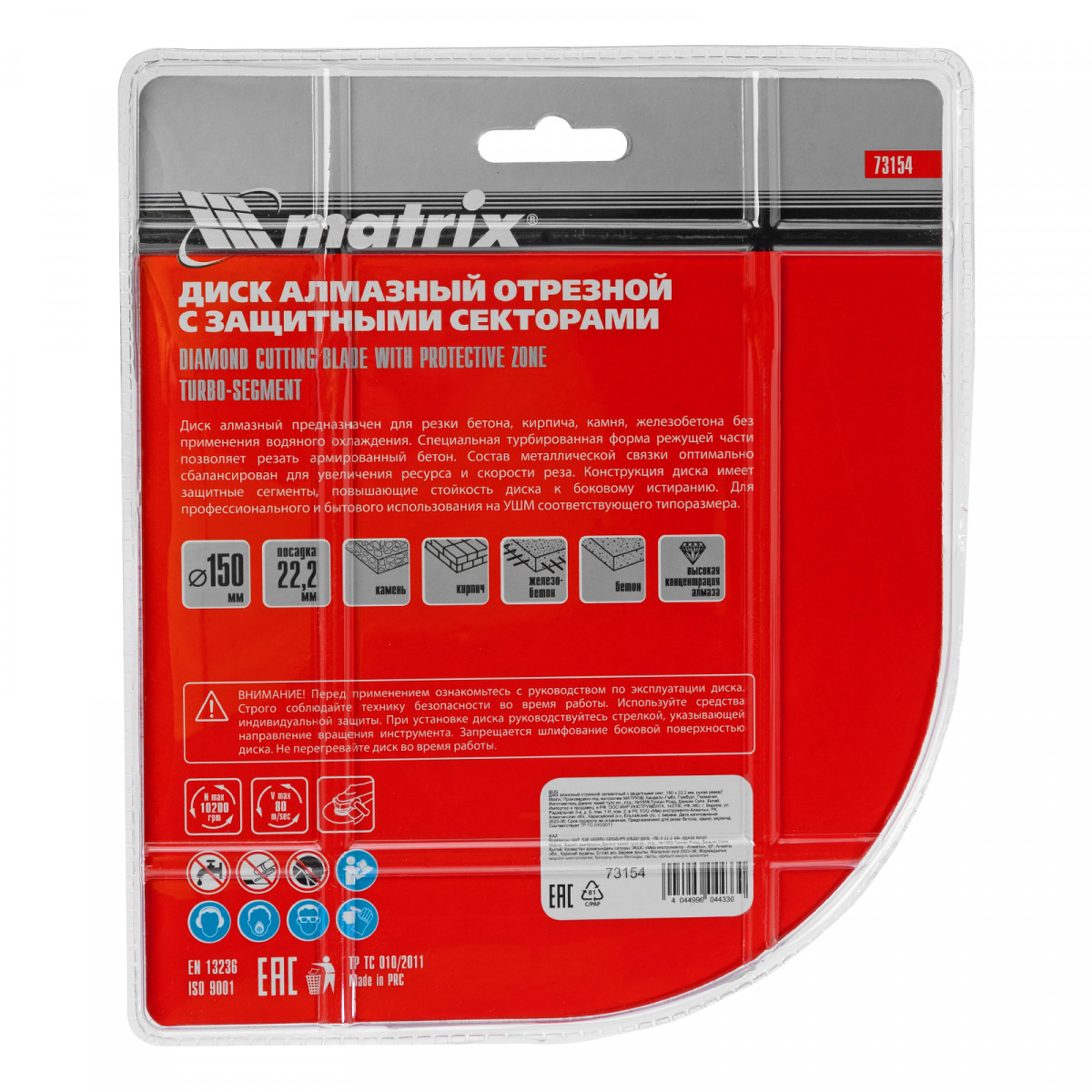 Диск алмазный, отрезной сегментный с защитными сект, 150 х 22.2 мм, сухая резка Matrix Professional