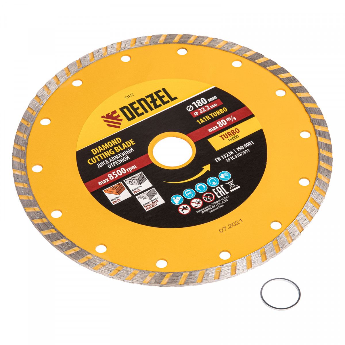 Диск алмазный, отрезной Turbo, 180 х 22.2 мм, сухая резка Denzel