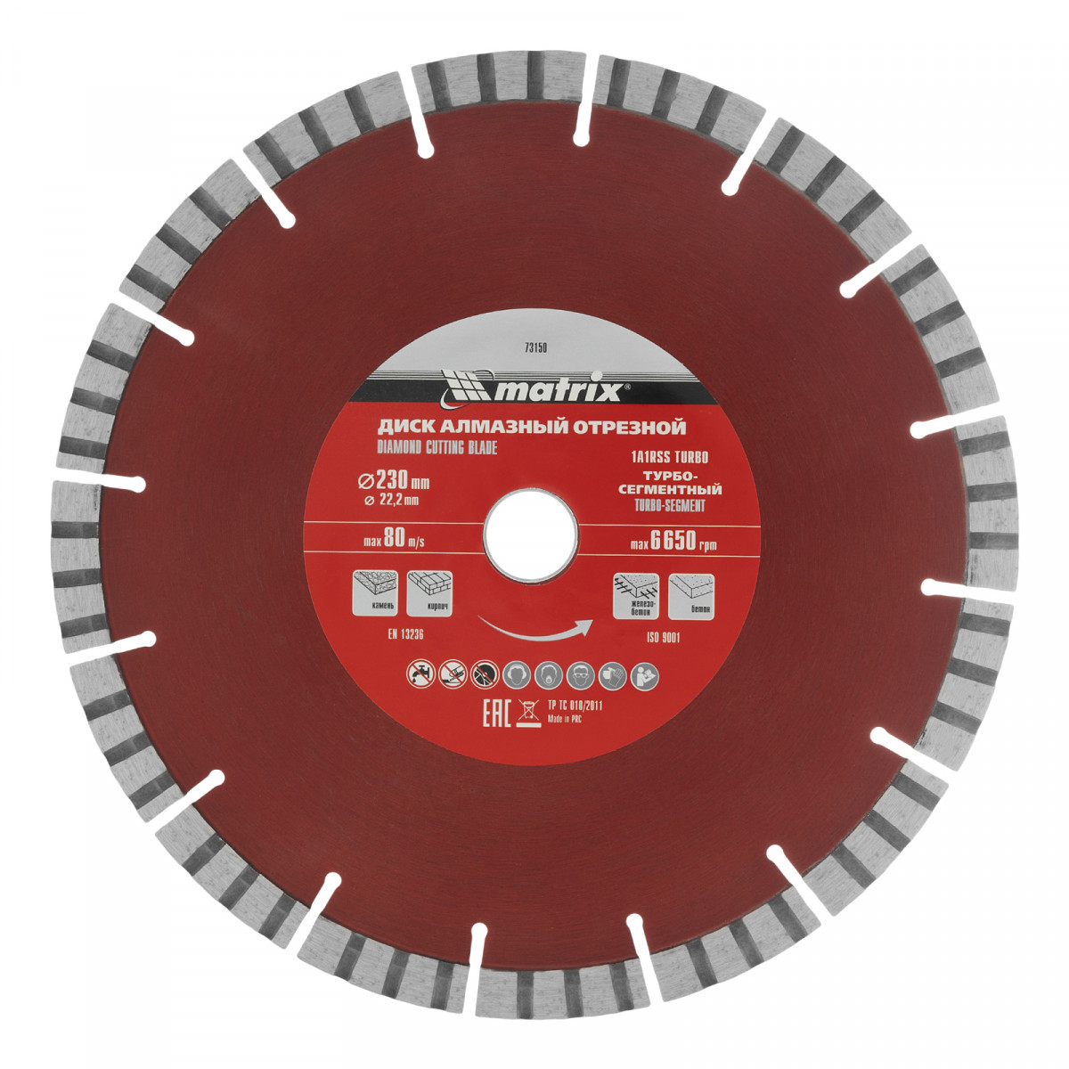 Диск алмазный, отрезной Турбо-сегментный, 230 х 22.2 мм, сухая резка Matrix Professional