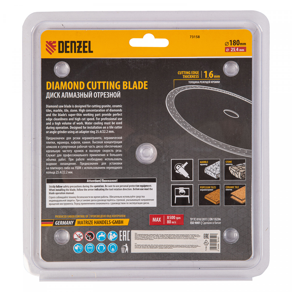 Алмазный диск ТМ Denzel "Сплошной" арт 73158, ф180 х 25,4 мм, предназначен для мокрого резания мрамора, керамогранита и керамическую плитки, камня. Устанавливается на плиткорез или УШМ (болгарку) с посадочным диаметром 25,4 мм. Высокая концентрация алмазов и супертонкая рабочая часть диска обеспечивает идеальную частоту кромок и высокую скорость реза.Диск произведен по технологии горячего прессования с увеличенной шириной режущей кромки (10мм) подходит для профессионального использования и больших объемов работ.