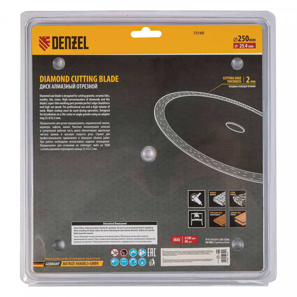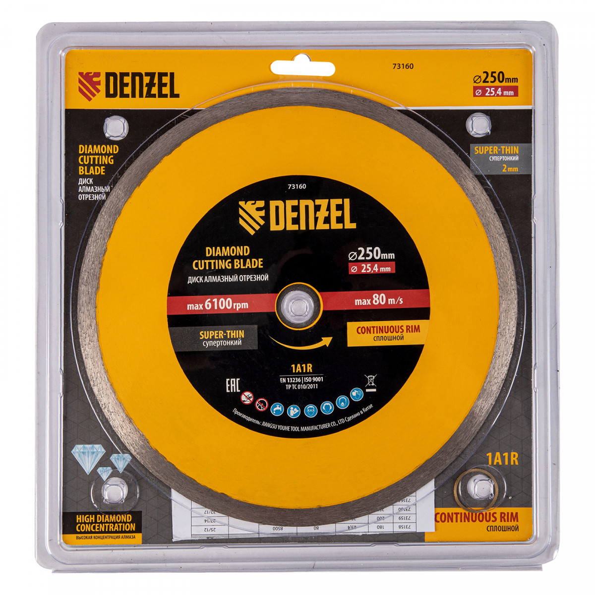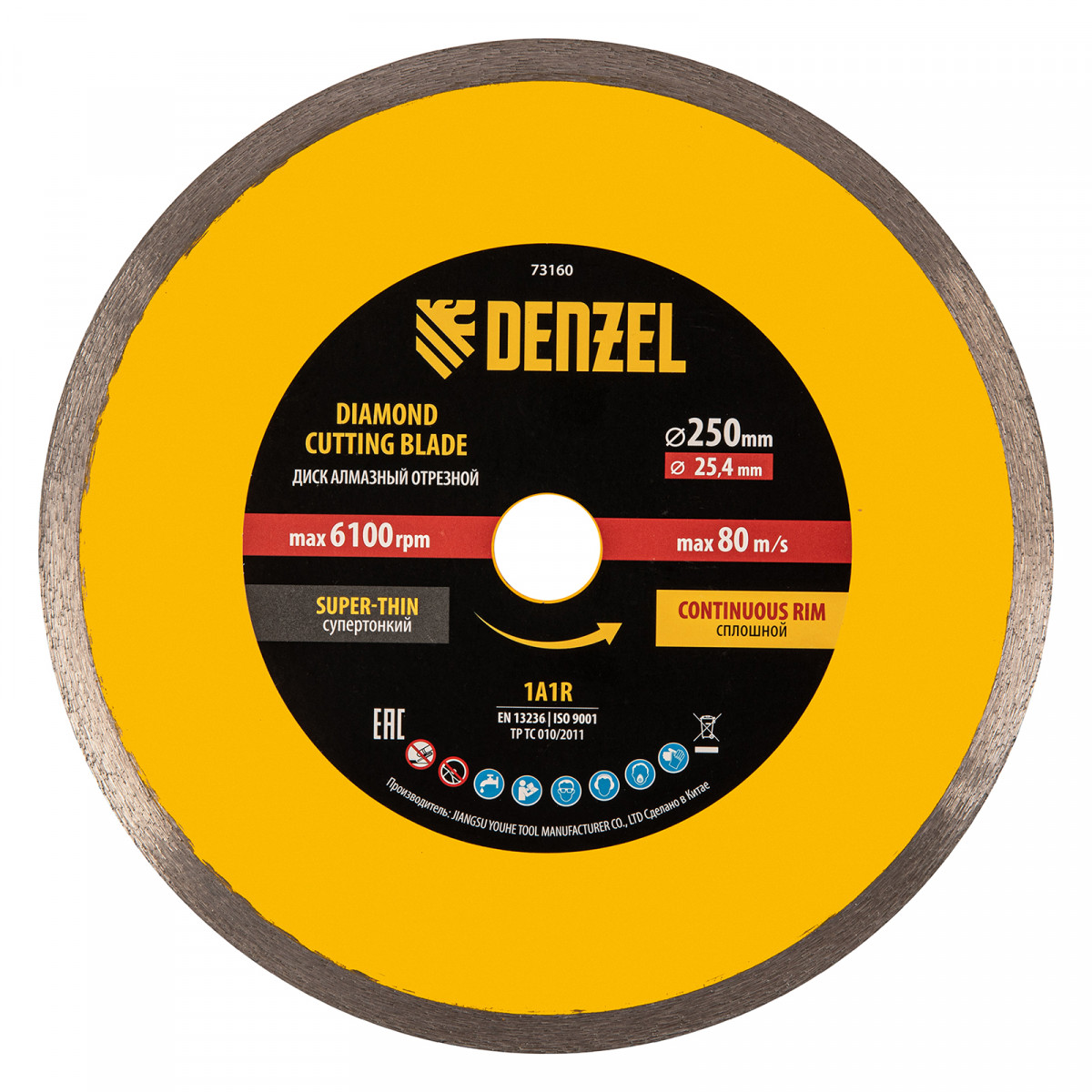 Диск алмазный сплошной, супертонкий, 250 х 25,4 мм, горячее прессование, мокрое резание Denzel