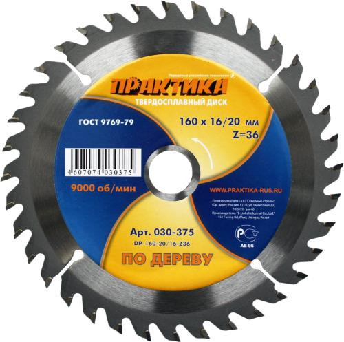 Диск пильный 160*20/16 мм 36 зубьев по дереву, ДСП "Практика"