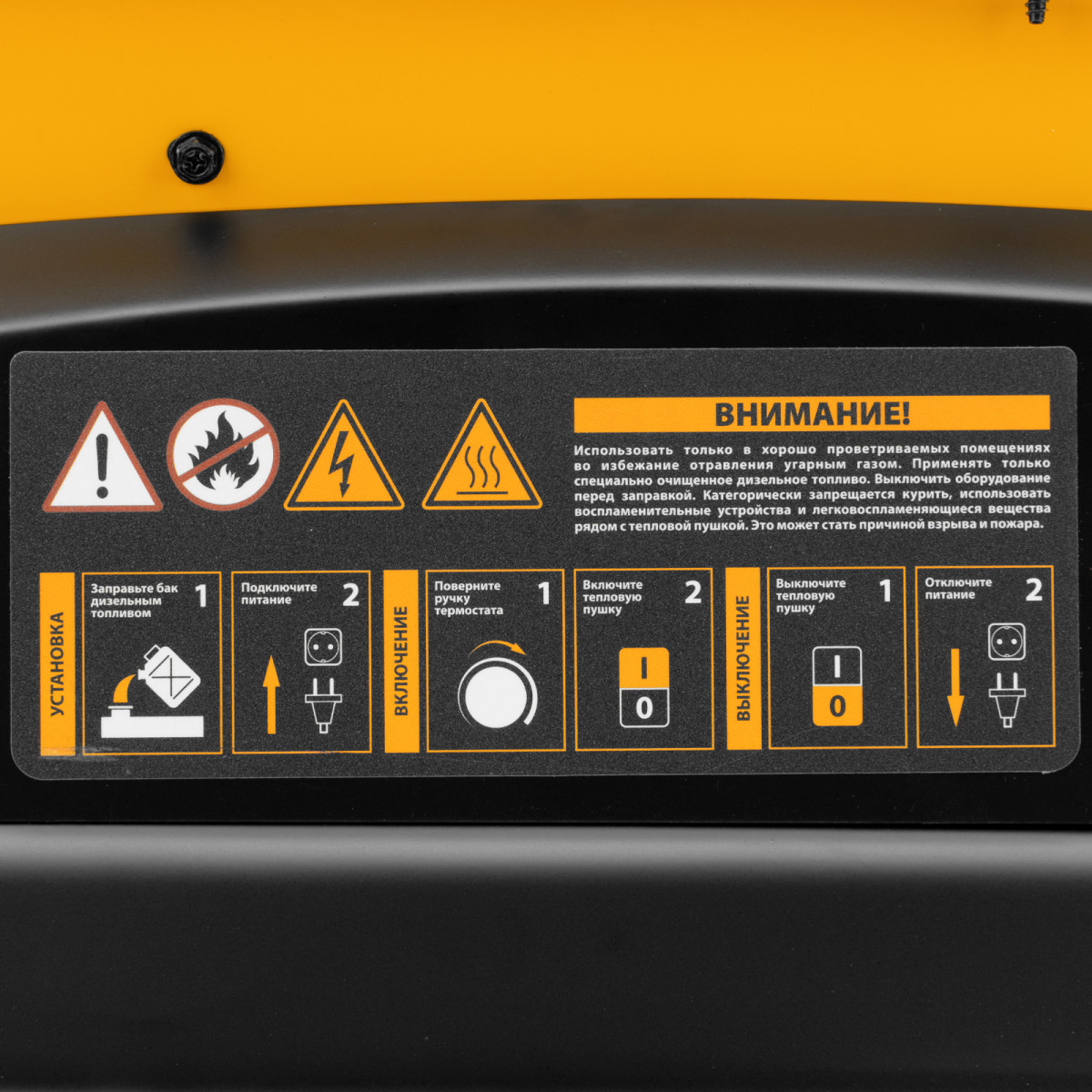 Дизельная тепловая пушка Denzel DHG-25i 96483 номинальной тепловой мощностью 25 кВт и производительностью 600 куб. м/ч, с прямым типом нагрева, с электронным термостатом, предназначена для обогрева цехов, складов, теплиц и других нежилых помещений. Используется в строительстве и на производстве. Пушка характеризуется низким расходом топлива: полного бака хватает на 10 часов работы. Важно: в обогреваемом помещении необходимо обеспечить хорошую вентиляцию.