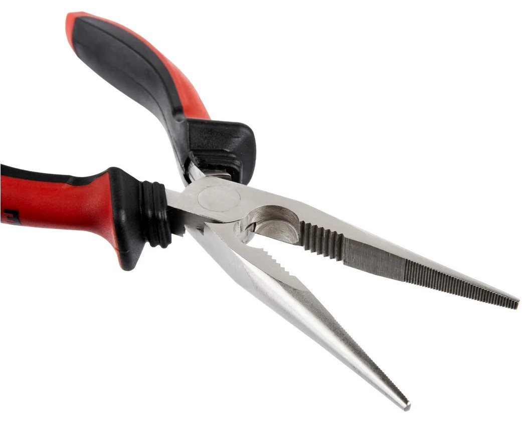 Длинногубцы длиной 200 мм из кованой стали с никелевым покрытием для защиты от ржавчины, с двухкомпонентными ручками, применяются для различных слесарных и автомеханических работ.