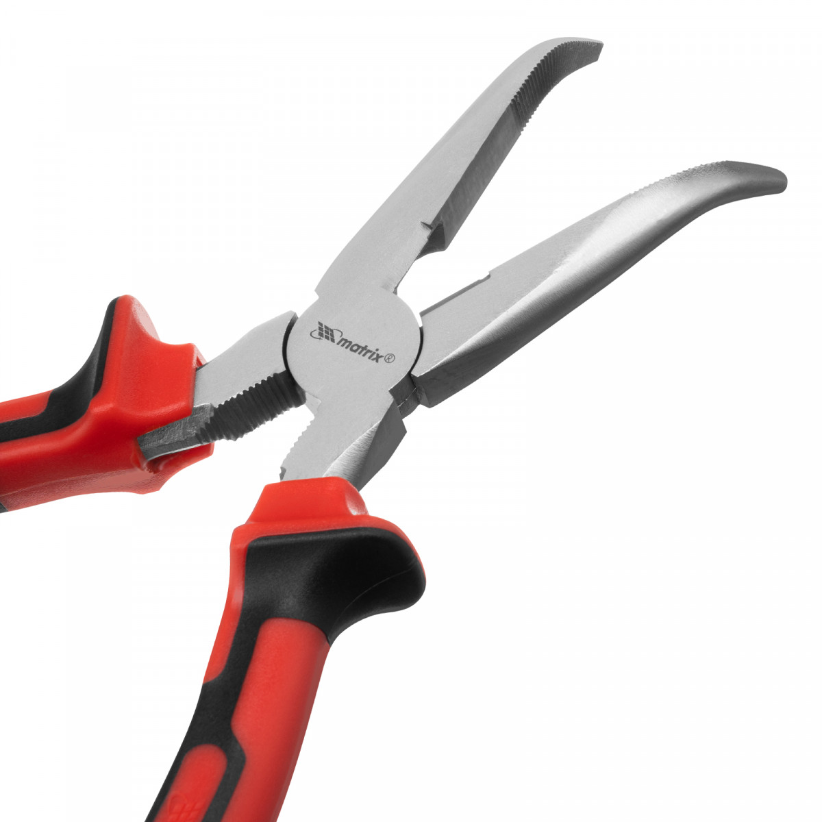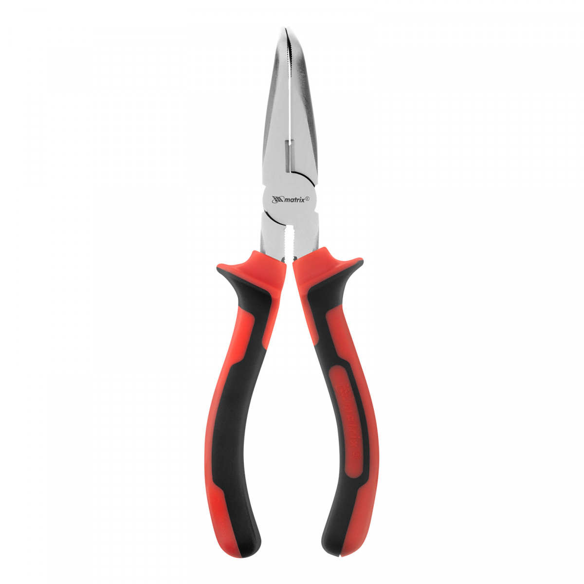 Длинногубцы изогнутые Nickel, 200 мм, никелированные, двухкомпонентные рукоятки Matrix