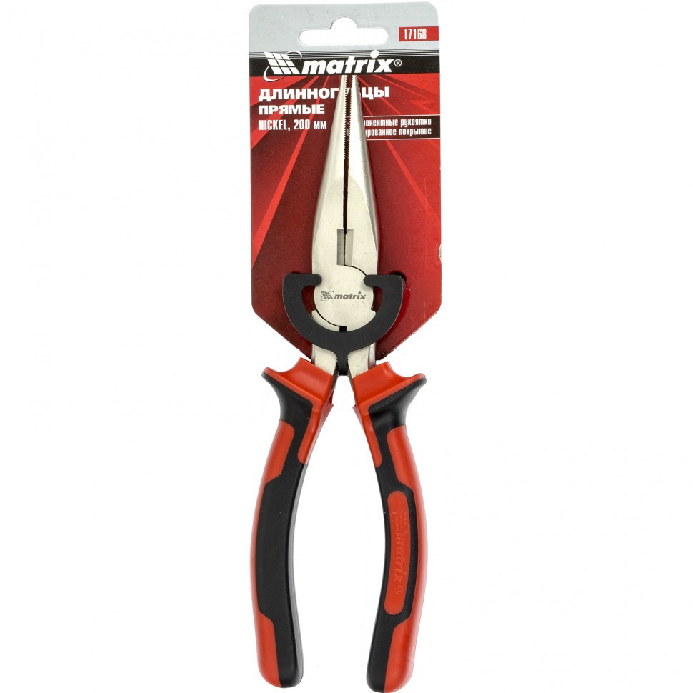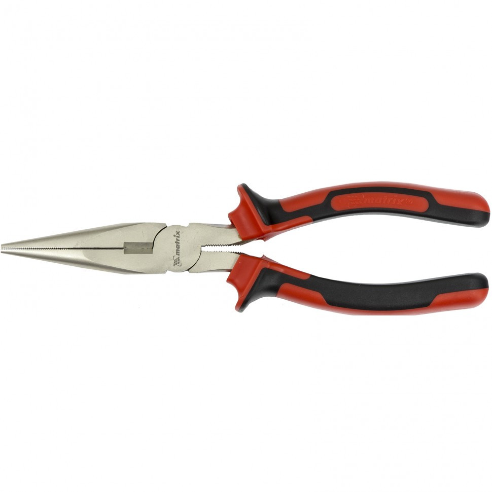 Длинногубцы прямые Nickel, 200 мм, никелированные, двухкомпонентные рукоятки Matrix