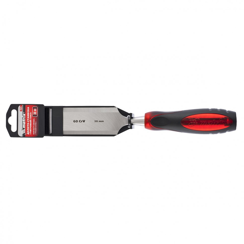 Долото-стамеска Matrix «Тигровый глаз» 24525 с полотном шириной 38 мм и двухкомпонентной обрезиненной рукояткой используется в столярном и плотницком деле, в производстве мебели. Позволяет вырезать углубления, формировать пазы, зачищать шипы и гнезда, снимать фаски. Инструмент выдерживает удары киянкой или молотком, т. к. металлический затыльник защищает его от деформации. Долото относится к профессиональному ручному инструменту, но может применяться и в домашних условиях.